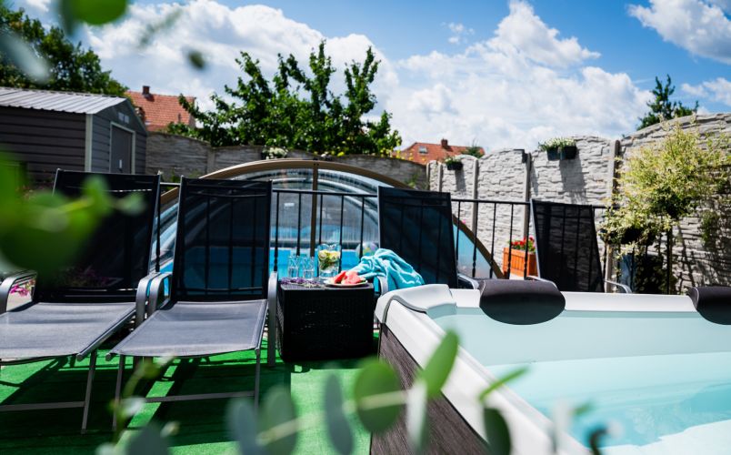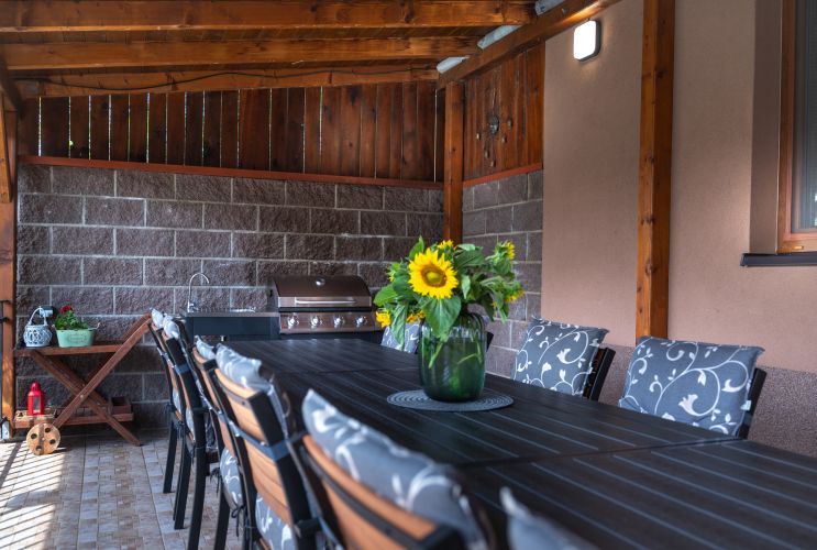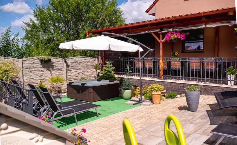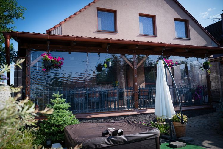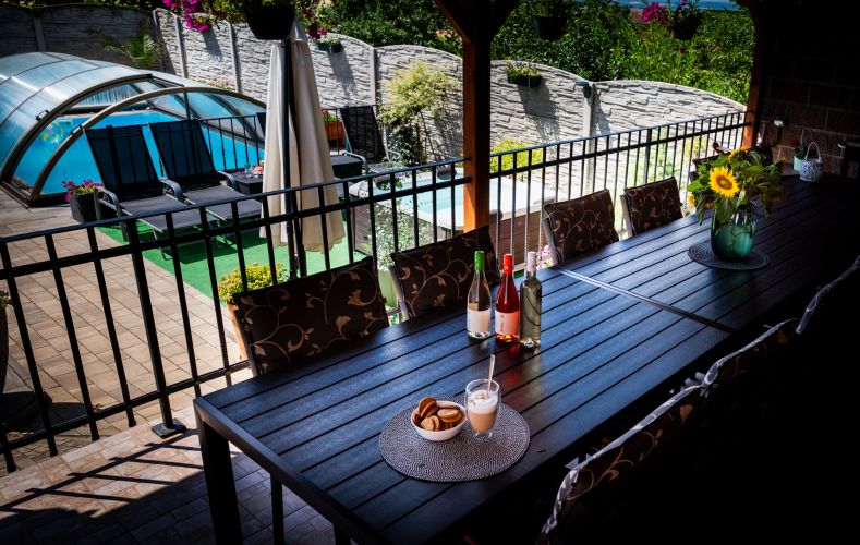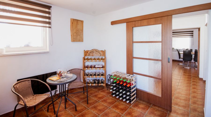 Penzion stojí v malebném sousedství vinic, odkud se otevírá nádherný výhled na Pálavu a okolní kopce Modrých hor. Po dni stráveném na cyklostezkách nebo toulkách vinařskými vesničkami si můžete odpočinout v útulném vinném sklípku, dát si sklenku místního vína na pergole, nebo využít gril, bazén a vířivku. Pro děti je připravena trampolína i stylový domeček.