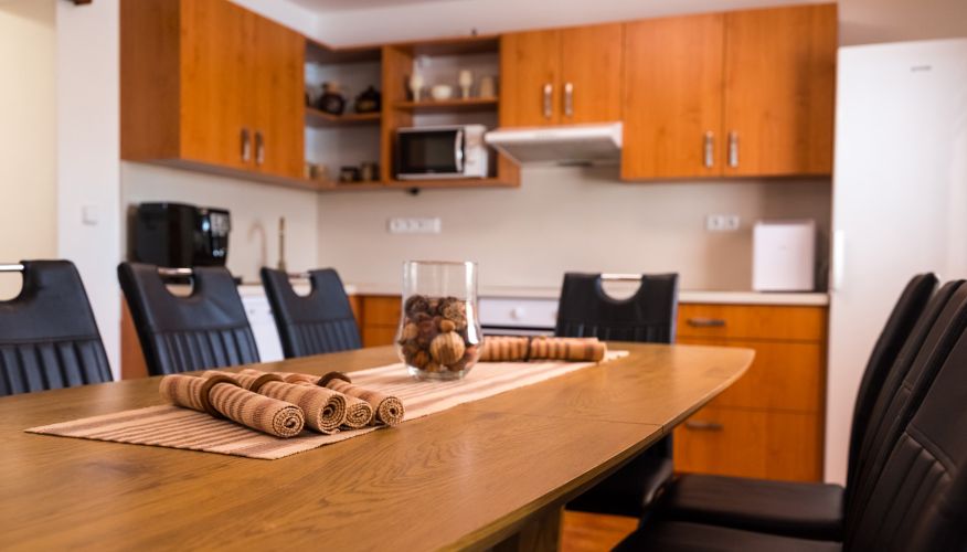 Ve společenské místnosti s plně vybavenou kuchyňskou linkou a televizí se snadno sejdete s přáteli i rodinou.