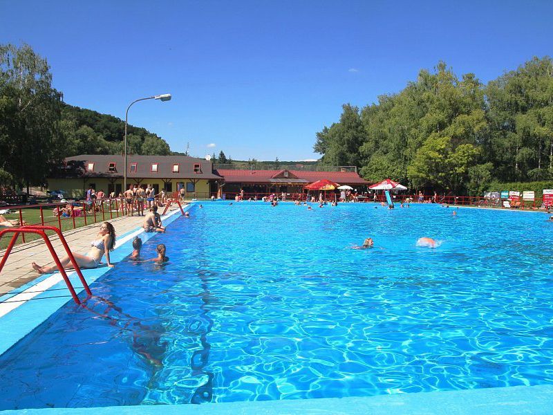 Koupaliště, dětské brouzdaliště, občerstvení, sportovní vyžití. Velikost hlavního bazénu je 50 x 25 metrů s pozvolným klesáním dna. Foto: turistika.cz